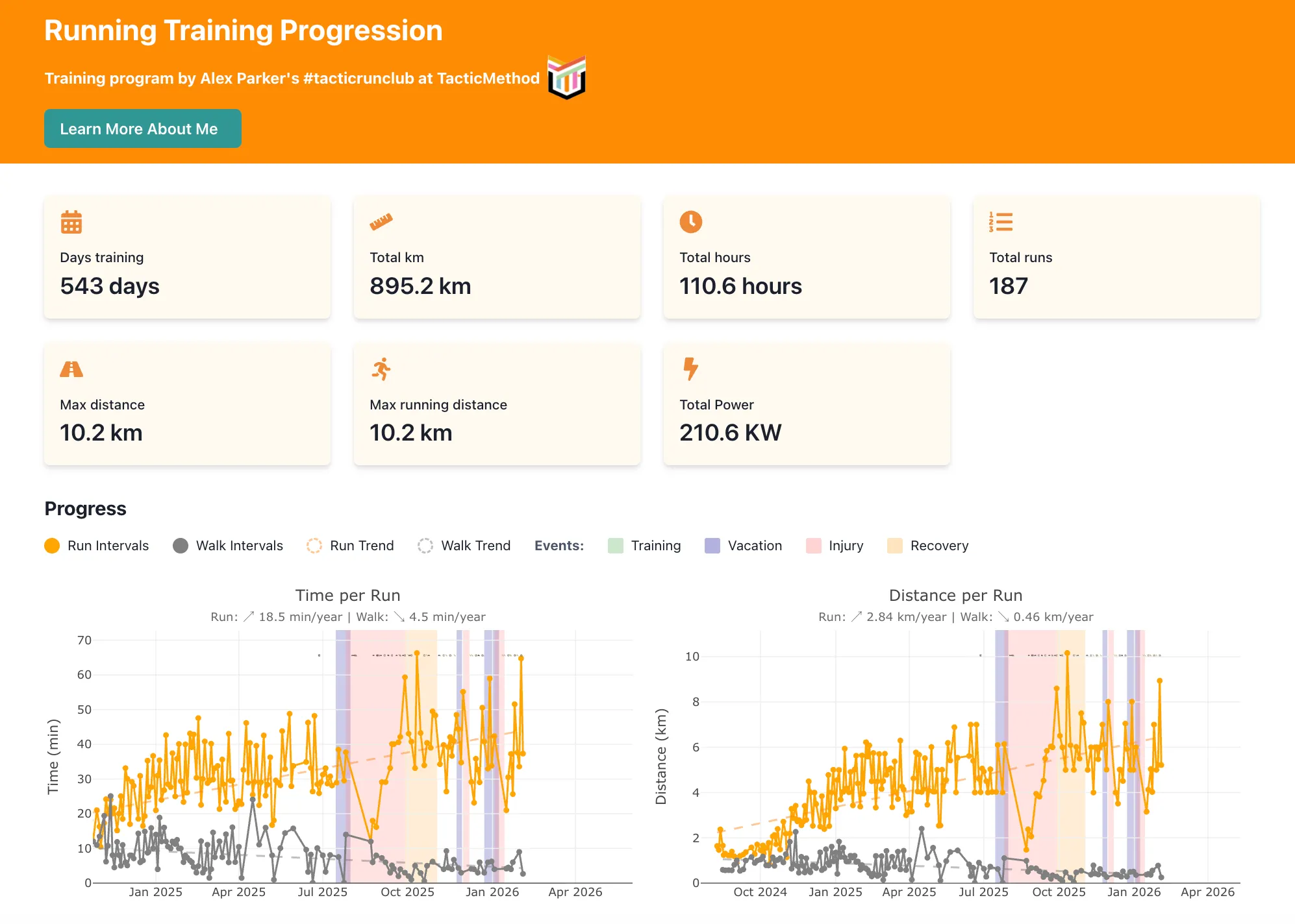 I started following a structured training program (Tactic Method with coach Alex Parker). Run-walk intervals. Progressive distance. Specific pace targets.